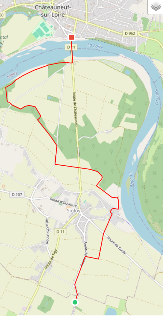Voici le tracé entre Tigy et Chateauneuf sur Loire.